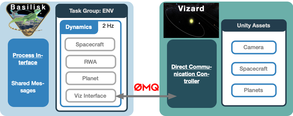 handled by the vizInterface module found in src/simulation/vizInterface. A figure illustrating the architecture